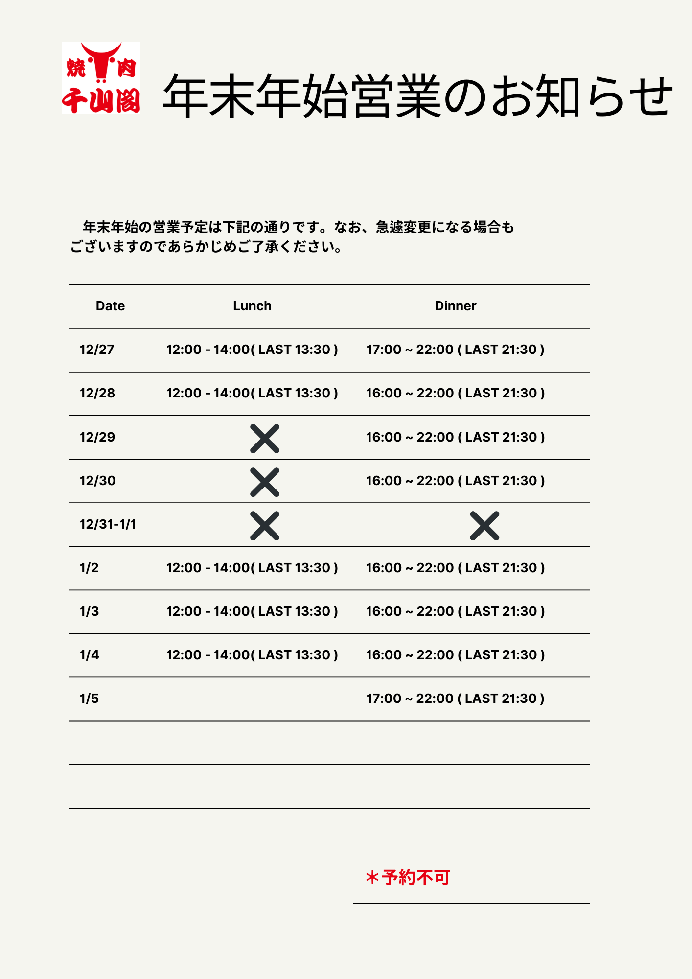 0 comments on “2025年末年始営業” Add yours →